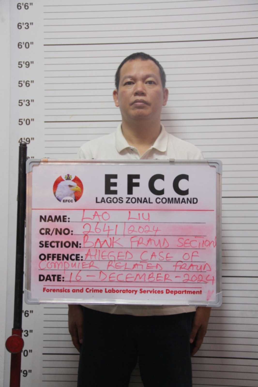 The charge reads: “That you, LIU BEIXIANG (A.K.A LAO LIU), sometime in December 2024 in Lagos, within the jurisdiction of this Honourable Court, did give information, which you knew to be false, to an officer of the Federal Government of Nigeria in the discharge of his duties and thereby committed an offence contrary to Section 16 (1) of the Economic and Financial Crimes Commission (Establishment) Act, 2004.”