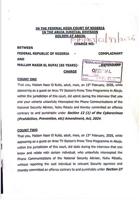 Human rights lawyer Inibehe Effiong has questioned the legal basis of a cybercrime charge reportedly filed against former Kaduna State Governor, Nasir El‑Rufai, over allegations involving the National Security Adviser, Nuhu Ribadu.