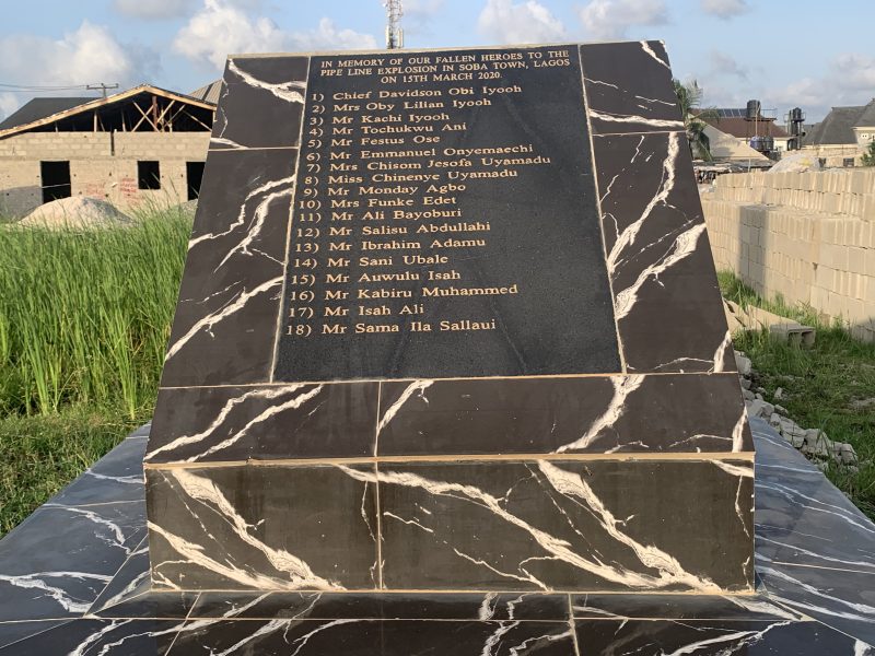 “In memory of our fallen heroes to the pipeline explosion in Soba Town, Lagos on 15th March 2020,” the tribute reads.