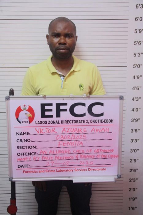 One of the counts reads: “ That you, Victor Azubike Awah, sometime between October, 2024 and February, 2025 in Lagos, within the jurisdiction of this honourable court, with intent to defraud, obtained the sum of 27,000.000.00 (Twenty Seven Million) from Mrs. Onwuekwe Chioma Genevieve under the false pretence that you have a plot of land advertised for sale, which pretence you knew or ought to have known to be false thereby committed an offence Obtaining Money by False Pretence contrary to Section 1(1) and punishable under Section 1(3) of the Advance Fee Fraud and other Fraud related Offences Act No. 14 of 2006.”