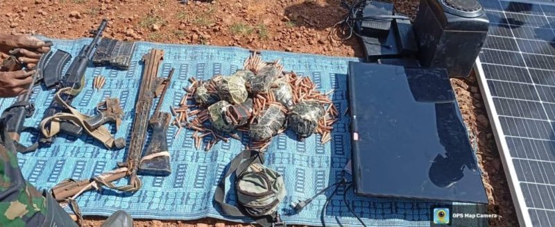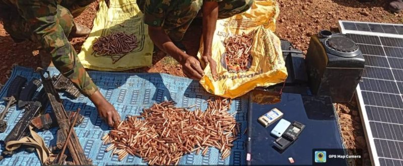 Major Zhakom said the recovered weapons are currently in military custody for further investigation, while efforts are ongoing to apprehend the fleeing suspect and his accomplices.