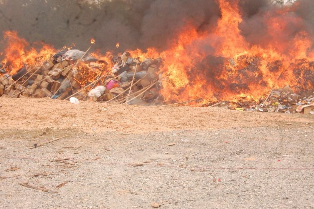 The National Drug Law Enforcement Agency, NDLEA, has destroyed heaps of illicit drugs weighing about 1.6 million kilograms of assorted substances seized across Lagos, Ogun and Oyo state, in what is to date the largest volume of seizures to be set ablaze at a time in the history of the Agency.