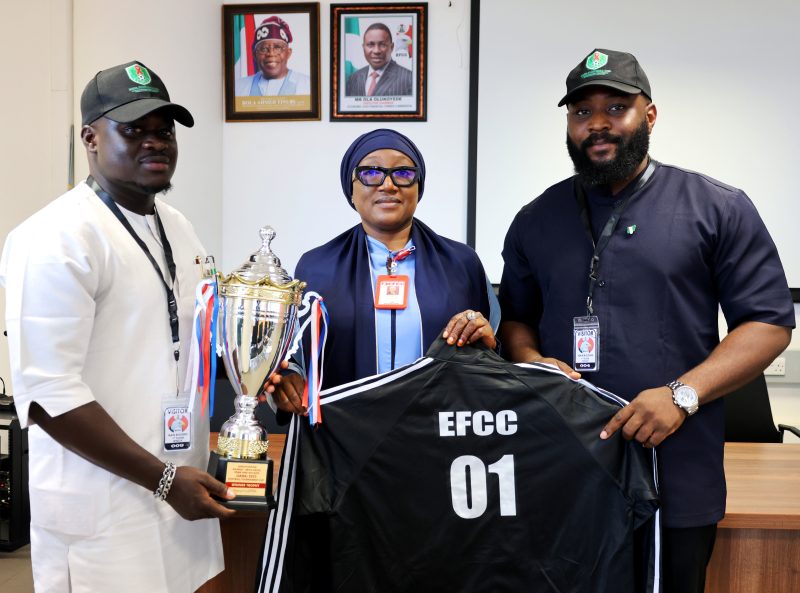 Mohammed conveyed the EFCC Chairman’s appreciation for the trophy presentation and his desire to attend the football tournament, scheduled to take place from October 17 to 19, 2025, in Abuja.